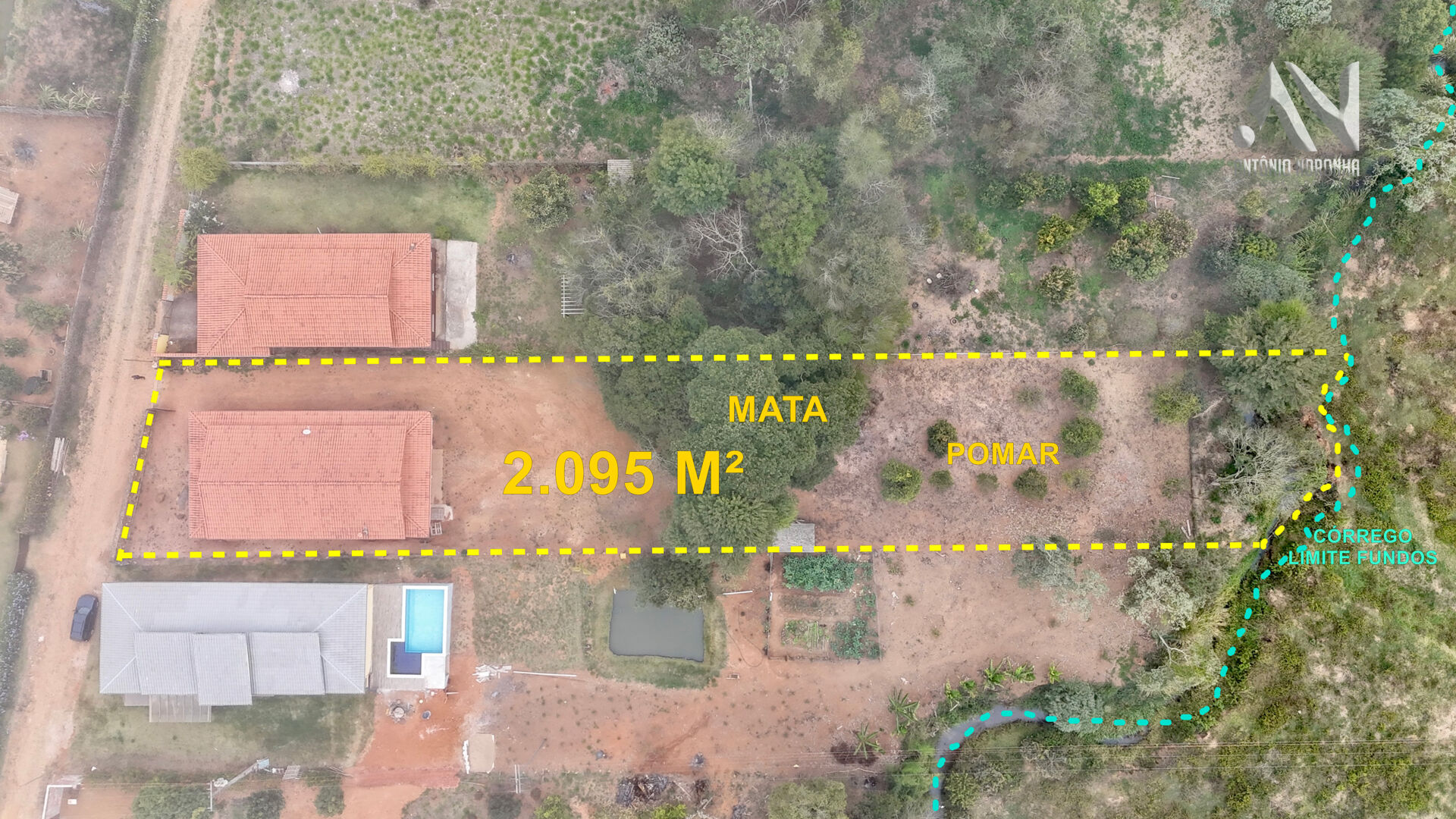 - Córrego ao fundo, que delimita a propriedade