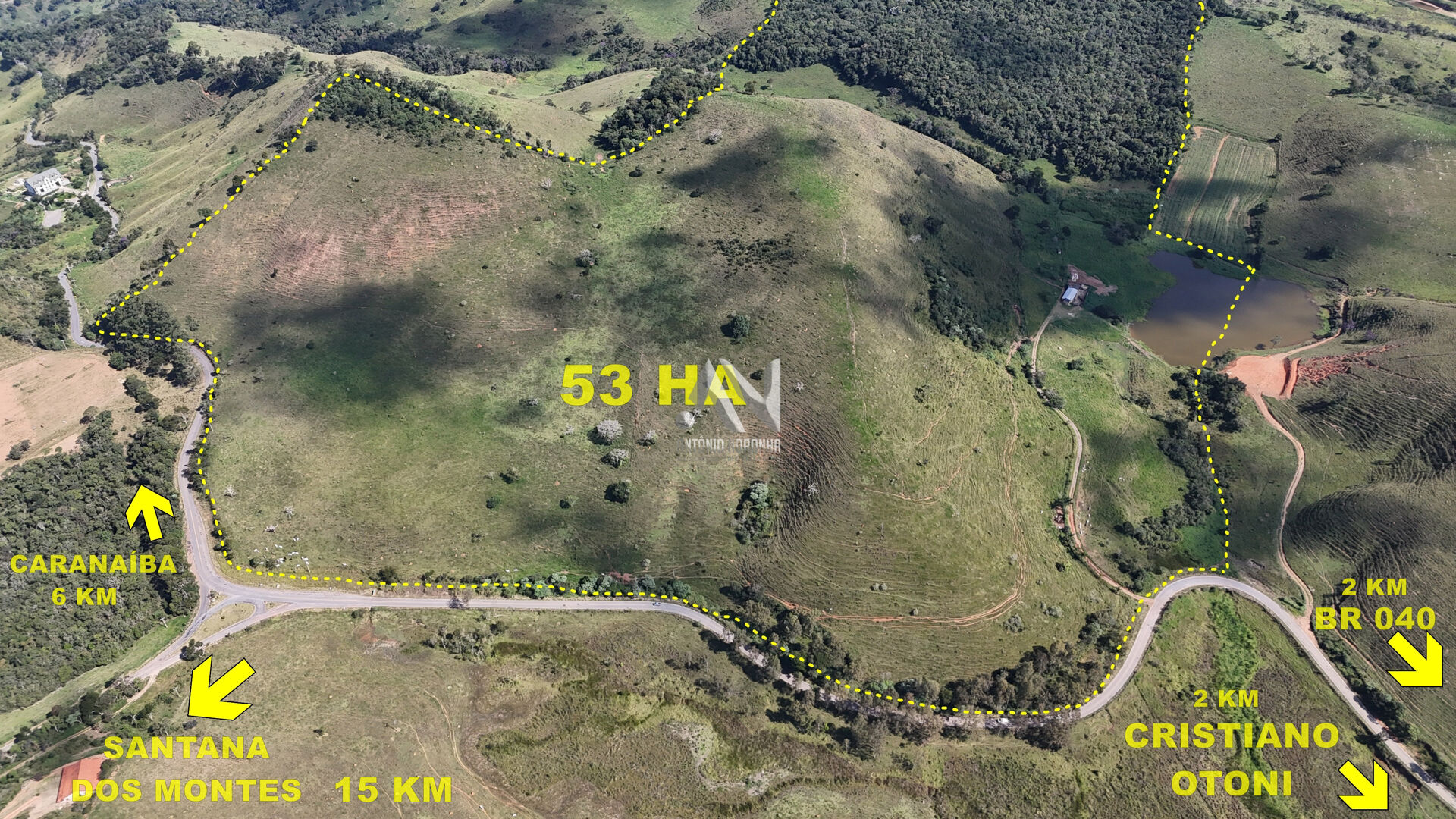 Terreno com boa aguada e frente de 1.000 metros para a estrada de asfalto que liga a BR 040 a Santana dos Montes.